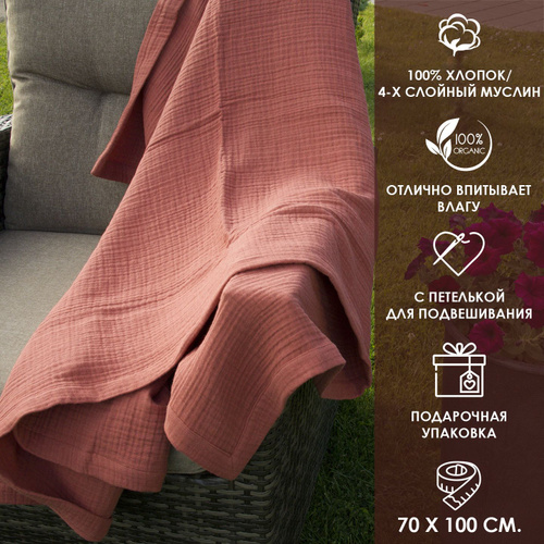 Tex-story Полотенце банное, Муслин, 70x100 см, коричнево-красный, коричневый, 1 шт.