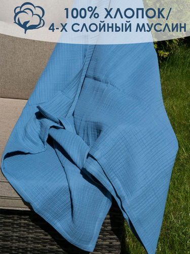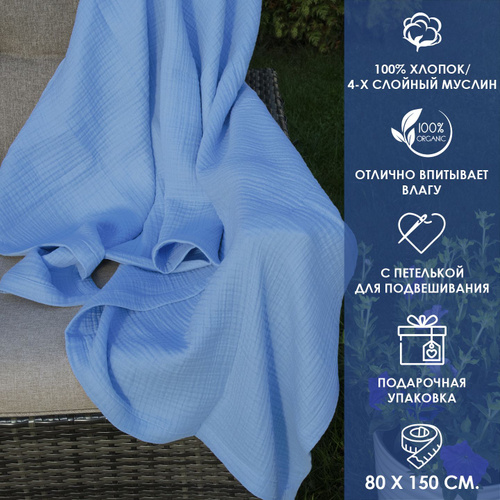 Tex-story Полотенце банное Муслиновое полотенце, Муслин, 80x150 см, голубой, 1 шт.