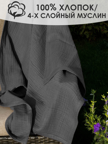 Tex-story Полотенце банное, Муслин, 70x100 см, черный, 1 шт.