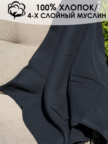Tex-story Полотенце банное, Муслин, 80x150 см, черный, 1 шт.