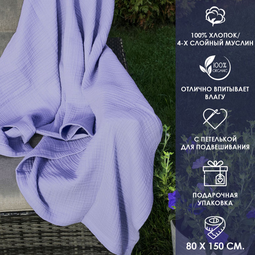 Tex-story Полотенце банное Муслиновое полотенце, Муслин, 80x150 см, сиреневый, 1 шт.