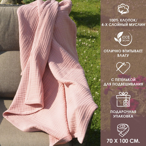 Tex-story Полотенце банное, Муслин, 70x100 см, розовый, 1 шт.
