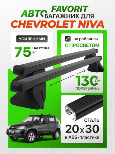 Багажник для Chevrolet Niva (Шевроле Нива), Favorit-130 20х30, на рейлинги с просветом, (поперечины и упоры)