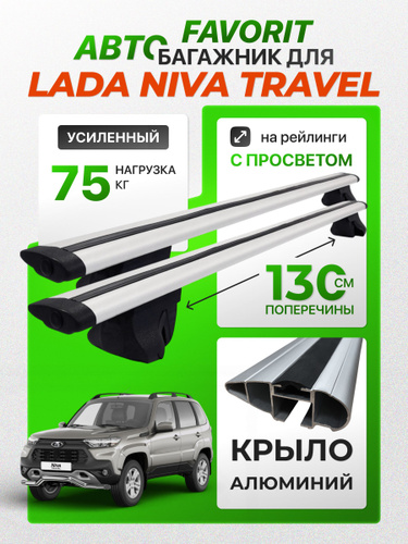 Багажник для Lada Niva Travel (Нива Тревел), Favorit-130 КРЫЛО, на рейлинги с просветом, (поперечины и упоры)
