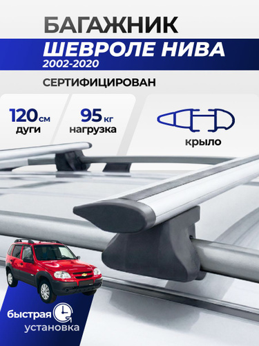 Багажник на крышу Шевроле Нива (2002-2020) / Chevrolet Niva (Шеви) комплект креплений на рейлинги автомобиля с крыловидными поперечинами / Автобагажник с дугами