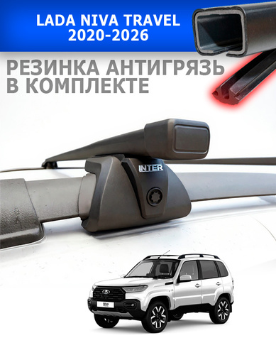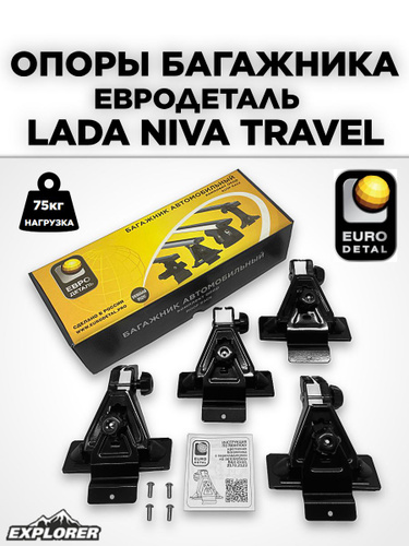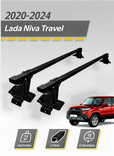 Багажник на крышу Лада Нива Тревел без рейлингов 2020-2024 / Lada Niva Travel (Рестайлинг) Комплект креплений в штатные места автомобиля с крыловидными поперечинами / Автобагажник с дугами