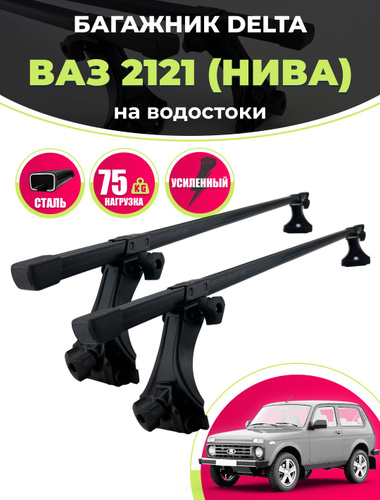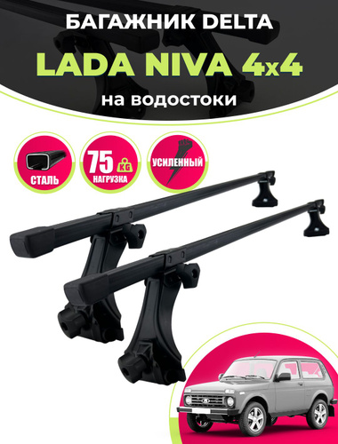 Багажник для Лада Нива на крышу за водостоки DELTA : 2 - рейки (20х30) 1,4м., черный пластик + стойки окрашенные 4 шт.