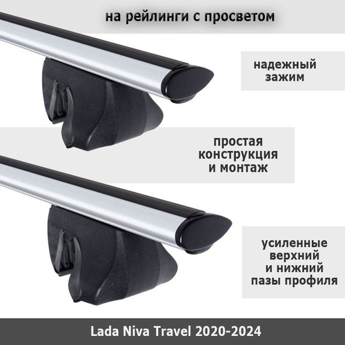 Багажник для Lada Niva Travel (Нива Тревел), Favorit-130 АЭРО, на рейлинги с просветом, (поперечины и упоры)