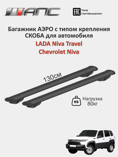 Багажник на крышу Альфа Тур для Lada Niva Travel / Нива Тревел 2020-2024, крыловидные Compact дуги 130