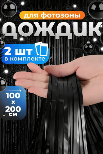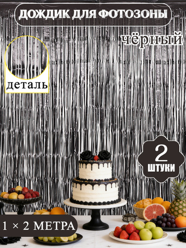 Занавес-дождик матовый черный для фотозоны, 1м x 2м, 2 шт. в наборе