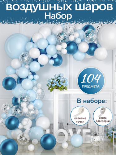 фотозона на день рождеaния ,шары воздушные,синий,104шт