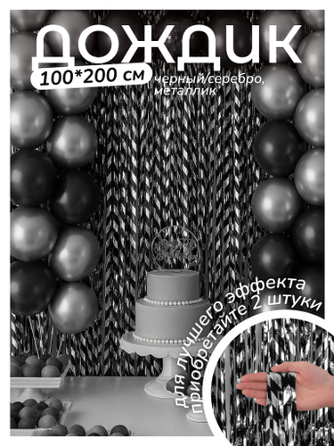 Дождик для фотозоны 100х200 см черный серебро металлик зигзаг, занавес для фотозоны на стену