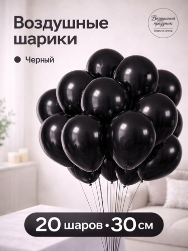 Воздушные шары для праздника и фотозоны. Черная пастель 20 шт. 30 см.