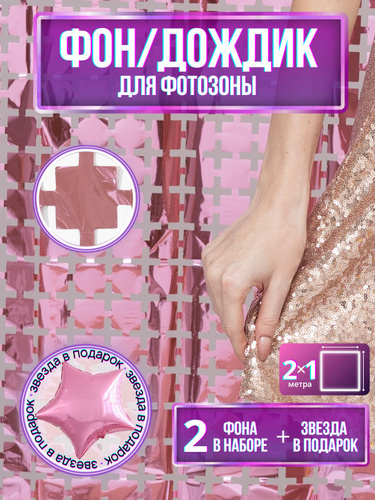 Фон/Дождик для фотозоны (ячейка 3х3) розовый 2 шт., звезда в подарок