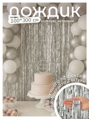Дождик для фотозоны 100х300 см серебро металлик, занавес для фотозоны на стену