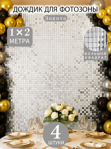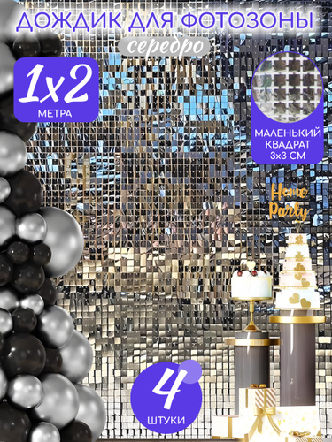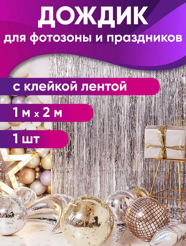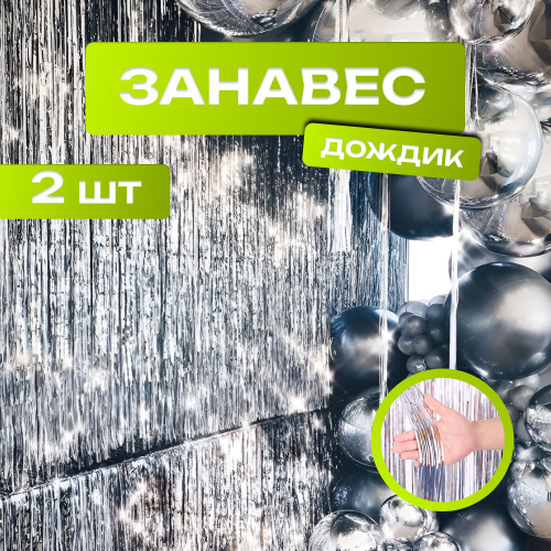 Занавес для фотозоны дождик, фотозона на день рождения, 1 шт, серебро, 1*2 м
