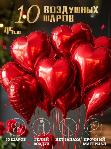 красное сердце фольгированные шары,10 шт,фотозона на свадьбу шары 45cm