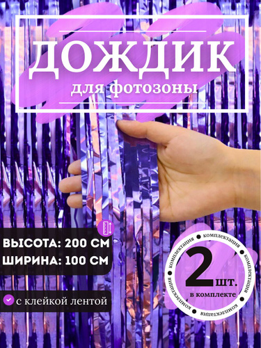 Дождик для фотозоны Сиреневый Металлик 2 шт., занавес для фотозоны 200 см.