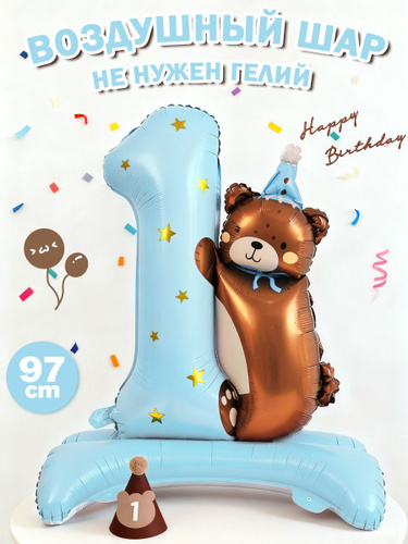 Воздушный шар из алюминиевой фольги, фотозона на день рождения, 1 год, медведь, 67х74 см, 1 шт.