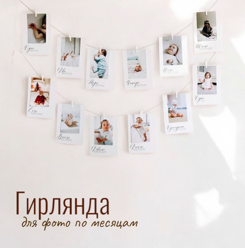 Растяжка для фото по месяцам на годик/ Гирлянда фотозона с прищепками