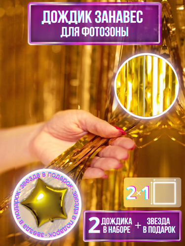 Дождик для фотозоны золотой 2 шт., звезда в подарок