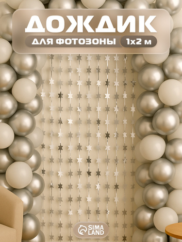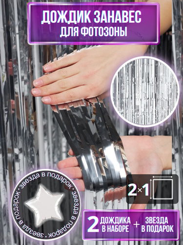 Дождик для фотозоны серебряный 2 шт., звезда в подарок