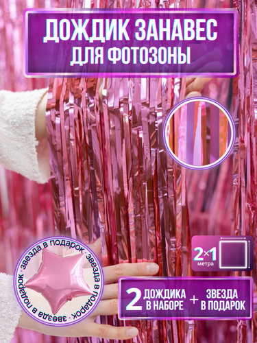 Дождик для фотозоны розовый 2 шт., звезда в подарок