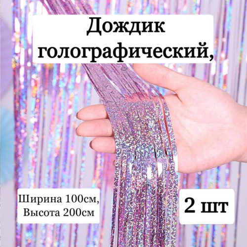 Дождик розовый голографический 2 шт, занавес для фотозоны 200 см