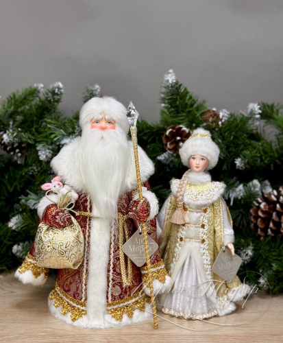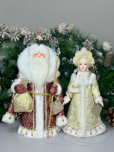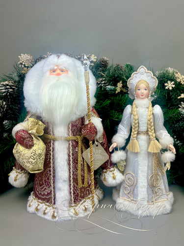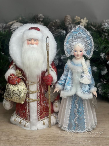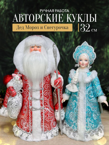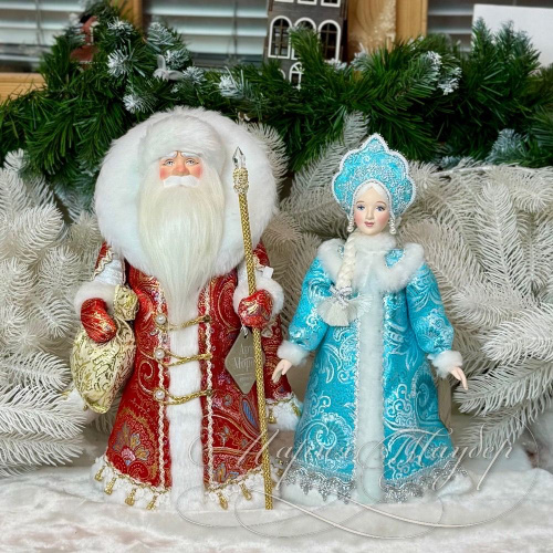АртМороз Дед мороз и Снегурочка русские 32см; новогодняя игрушка под ёлку; авторская кукла ручной работы; подарок на Новый Год