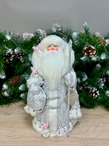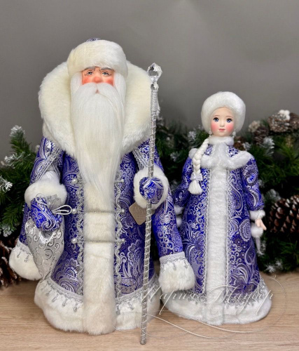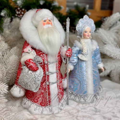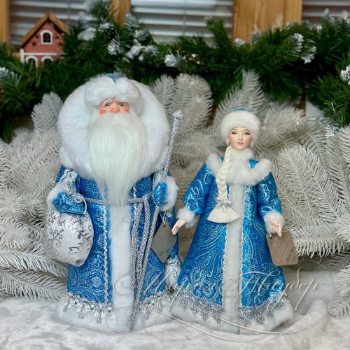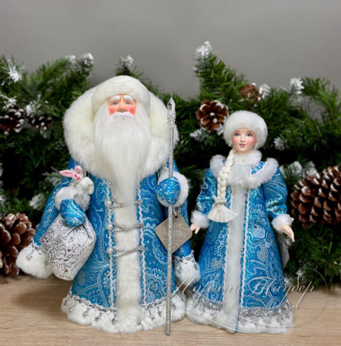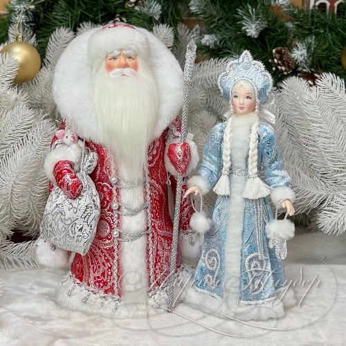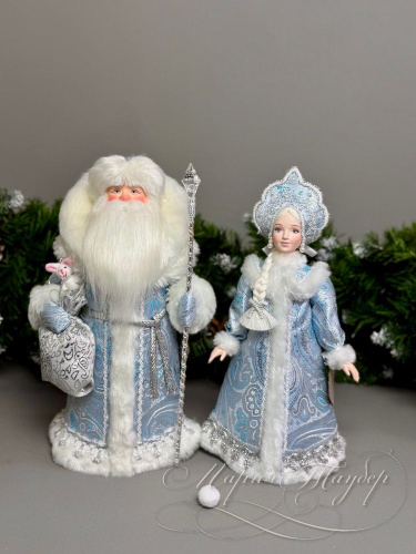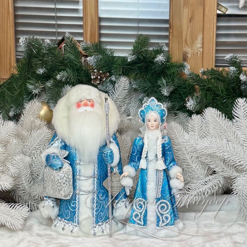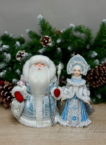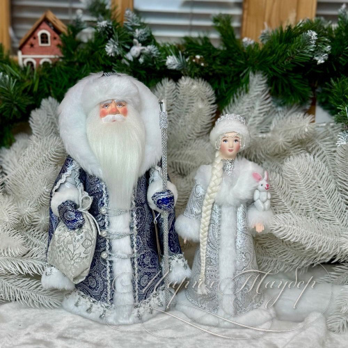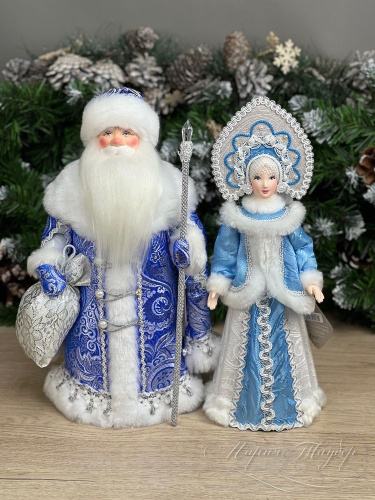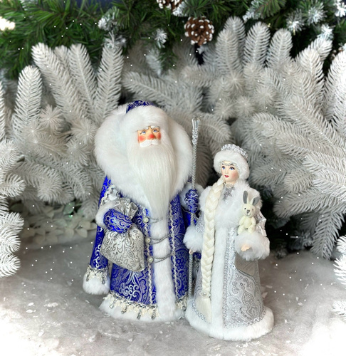 АртМороз Дед мороз и Снегурочка серебряная русские 32см; новогодняя игрушка под ёлку; авторская кукла ручной работы; подарок на Новый Год