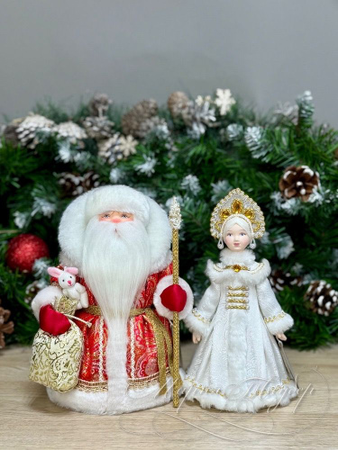 АртМороз Дед мороз и Снегурочка русские 33см; новогодняя игрушка под ёлку; авторская кукла ручной работы; подарок на Новый Год