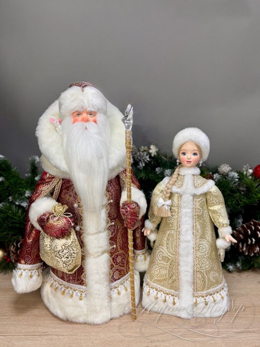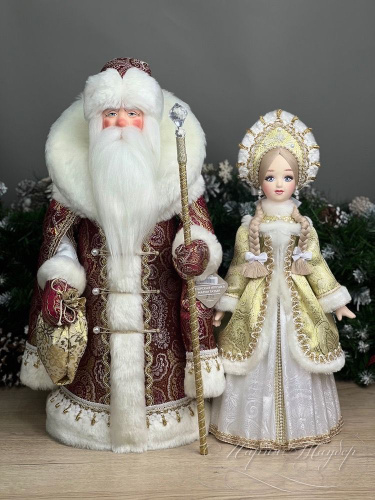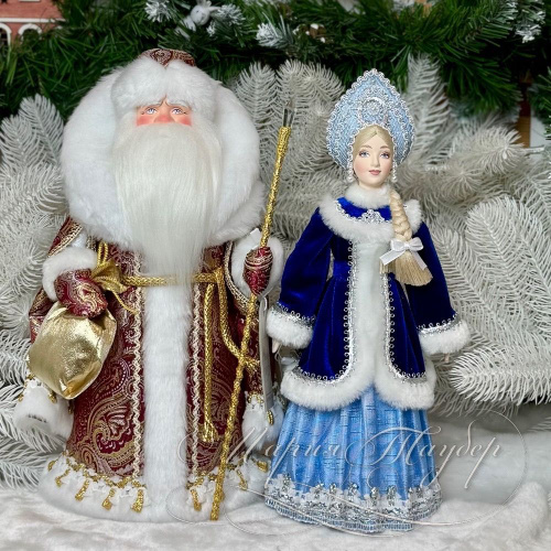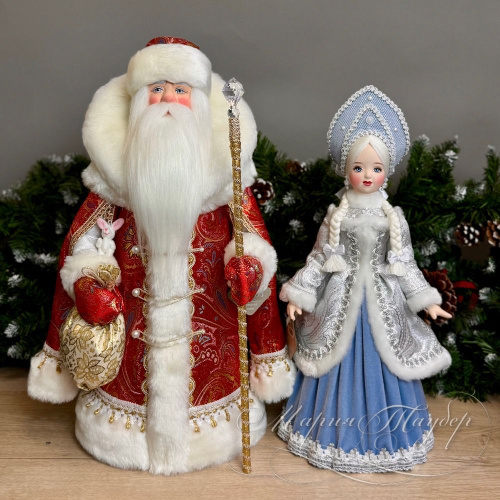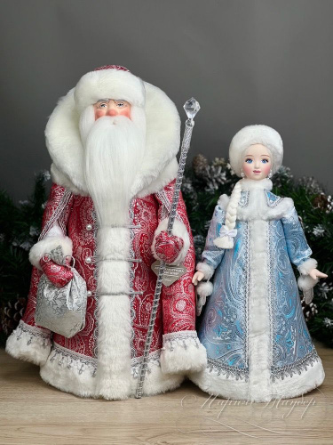 АртМороз Дед Мороз и Снегурочка русский 50см, новогодняя игрушка под ёлку, авторская кукла ручной работы