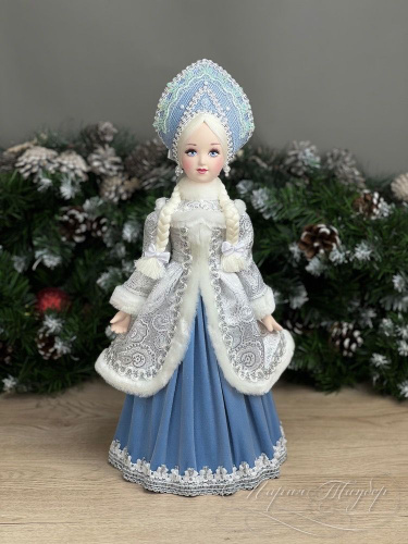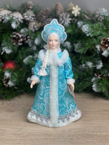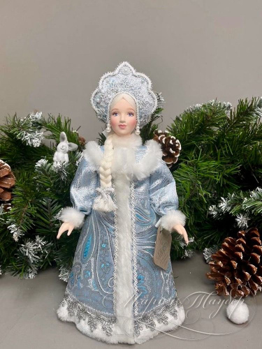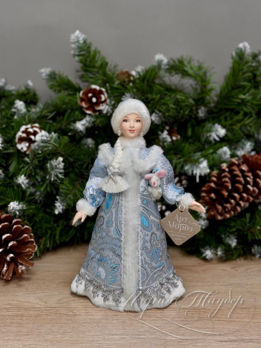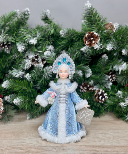 АртМороз Снегурочка в небесной шубке 28 см, новогодняя игрушка под ёлку, авторская кукла ручной работы