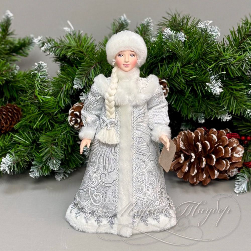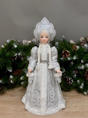 АртМороз Снегурочка в серебряной шубке 28 см, новогодняя игрушка под ёлку, авторская кукла ручной работы