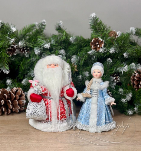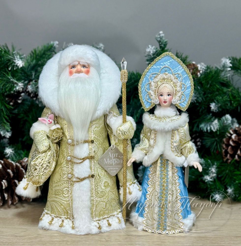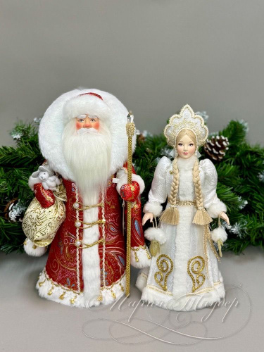 АртМороз Дед мороз и Снегурочка русские 33см, новогодняя игрушка под ёлку, авторская кукла ручной работы