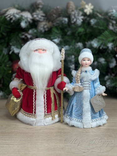 АртМороз Дед мороз и Снегурочка русские 24см, новогодняя игрушка под ёлку, авторская кукла ручной работы