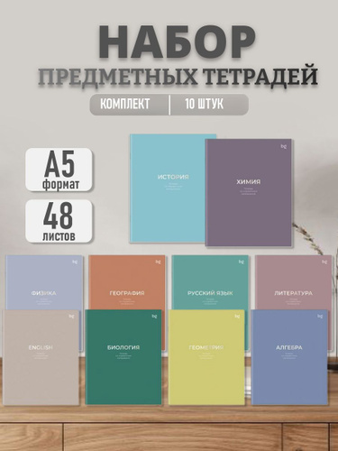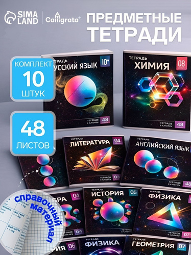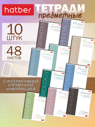 Комплект предметных тетрадей Антология, 48 листов, клетка/линейка, со справочным материалом (10 шт.)