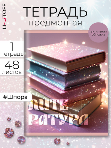 Тетрадь предметная Listoff 48 листов, бархатистая обложка софт-тач Сияние. Литература