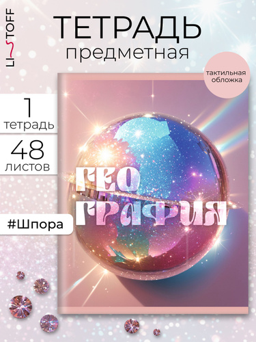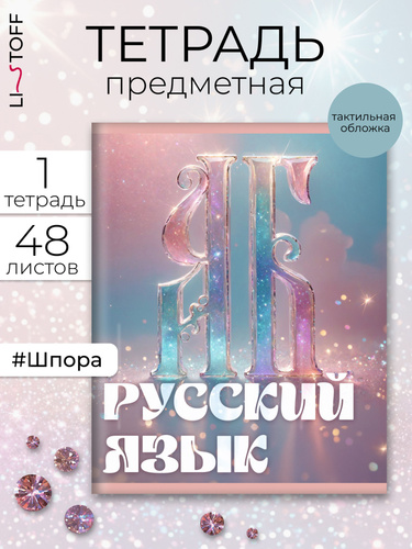 Тетрадь предметная Listoff 48 листов, бархатистая обложка софт-тач Сияние. Русский язык