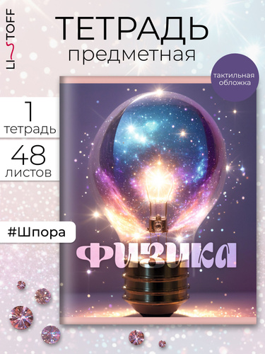 Тетрадь предметная Listoff 48 листов, бархатистая обложка софт-тач Сияние. Физика