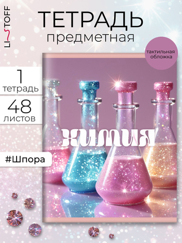 Тетрадь предметная Listoff 48 листов, бархатистая обложка софт-тач Сияние. Химия