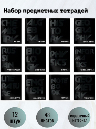 Набор предметных тетрадей 48 листов "TOTAL BLACK" 12 штук