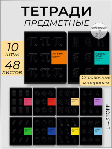 Тетради предметные 48 листов Listoff,10 предметов, на скрепке, черные