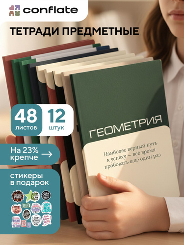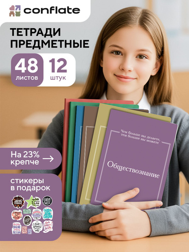 Conflate Тетради предметные 48 листов набор 12 штук в клетку и линейку