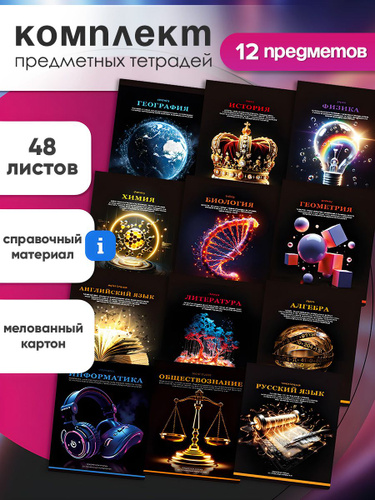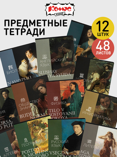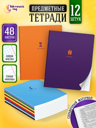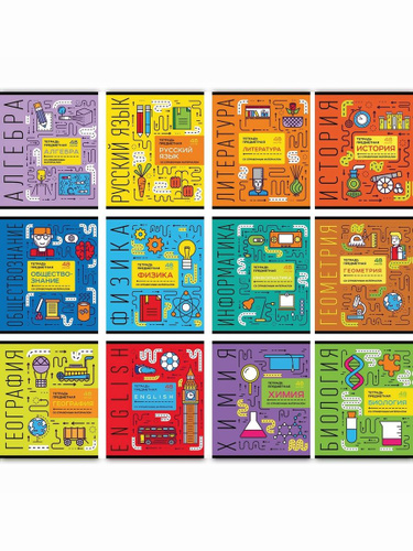 Тетради предметные 48 листов набор, 12 шт. полный комплект для школы и вуза