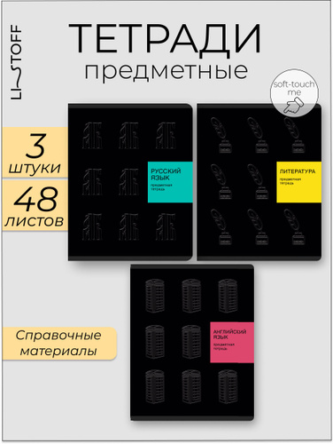 Тетради предметные Listoff 48 листов, набор школьных тетрадей 3 штуки, русский язык, литература, английский