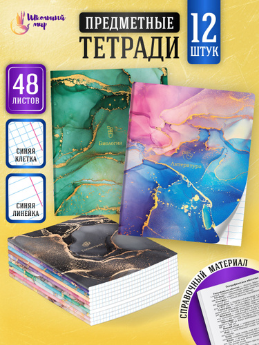Набор предметных тетрадей "Школьный мир", 12 штук, 48 листов, в клетку, 70 г/м "Мрамор"