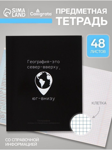 Тетрадь предметная "На Чёрном" 48 листов в клетку Геометрия, блок офсет