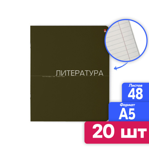 Тетрадь предметная Литература "ONE COLOR", 20 штук, набор тетрадей 48 листов