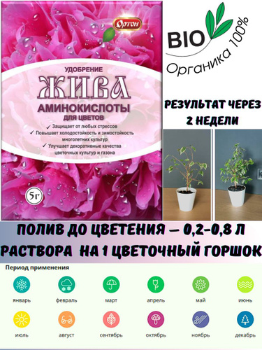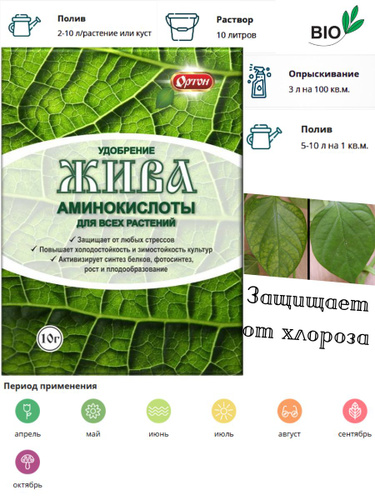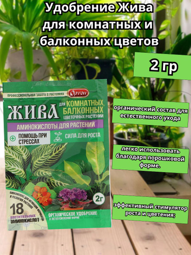 Удобрение Жива 10гр х 1шт (на 10л воды) / Аминокислоты для всех растений / Защита от стресса, стимуляция роста и корнеобразования/